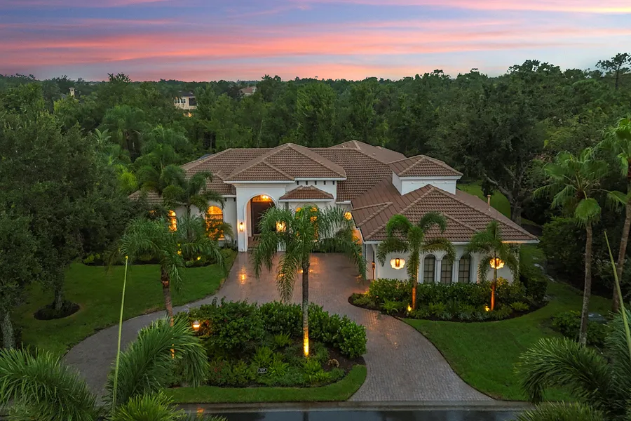 In Lakewood Ranch Country Club, this newly renovated, custom estate commands attention for its thoughtful floor plan, high-end selections and private preserve lot. As you arrive, note the quiet double cul-de-sac street, circular driveway and meticulously landscaped and fenced grounds. The double doors open to a grand foyer that leads to a light-filled sitting room with 10-foot glass sliders that extend the living space seamlessly onto the lanai for indoor/outdoor Florida living. Architectural details including 36-inch porcelain tiles, tray ceilings, crown moldings, custom window treatments, and new designer lighting and fans throughout create an atmosphere of understated sophistication. Continue towards the family room where you'll find a large modern yet elegant fireplace thoughtfully near the heart of the home, the warm, inviting kitchen. The kitchen doubles as an entertaining area with an oversized central quartz island. The dual oven Viking range and 60-inch custom plaster hood are showstoppers. The extra-large Rohl sink and faucet are just as functional as they are beautiful. The custom white oak open shelving lends an airiness to the space while a floor to ceiling built-in glass cabinet lets you showcase your heirlooms. The completely built-out pantry has pullout drawers for maximum utility and storage. A large corner coffee bar plus a dedicated wine room with dual wine fridges and ample shelving for your wine collection complete the space. The primary suite is thoughtfully on one side of the home. It is a private retreat that includes bay-window seating and access to the lanai. The fully renovated primary bath includes separate large individual Restoration Hardware vanities and elevated fixtures. The oversized stone Perlato soaking tub and expansive walk-in shower provide a spa-like experience. Not to be forgotten, note the newly built walk-in custom closets. In addition to two bedrooms that share a Jack and Jill bath, don't miss the gigantic bonus room with attached guest wing that includes a fourth bedroom, newly renovated bath and private gym/flex-space. Go out to the lanai to an expansive lounge area, to dine alfresco or for a dip in the pool. The new outdoor kitchen with built-in grill and hood, beverage refrigerator, sink and storage makes cooking outside easy. Further features include a spacious three-car garage with walk-up temperature-controlled loft storage, all-new outdoor lighting, and a fenced-in yard with a separate doggie run. This residence is complemented by its enviable location in the prestigious Lakewood Ranch Country Club, a gated community celebrated for its resort-style amenities and exceptional quality of life. Residents enjoy three championship golf courses, a state-of-the-art fitness center, tennis and pickleball courts and a grand clubhouse offering fine dining, social events and a vibrant lifestyle. With scenic walking trails, proximity to top-rated schools and easy access to Lakewood Ranch Main Street, Waterside Place, and the cultural treasures of Sarasota, this is more than a home—it is a complete lifestyle.