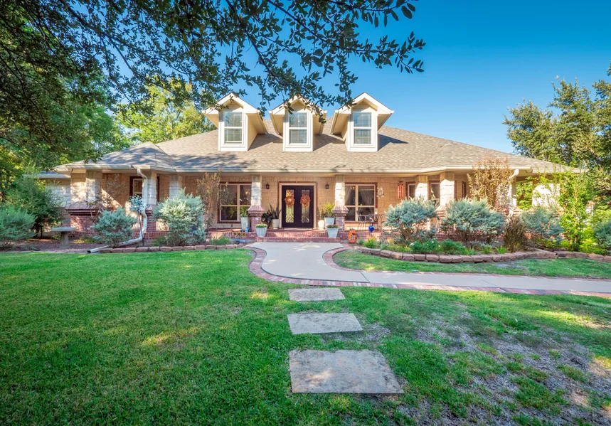 Beautiful 5 bedroom custom home on 10 acres with upgrades throughout! Over 4500 SF of living space in the main home there is an office/library, 3 living areas, upgraded tile flooring and crown molding. The gourmet kitchen offers an extended island and breakfast bar, granite counters, induction cooktop, bottom convection & a microwave convection oven combo on top. Gorgeous chandelier style pendant lighting highlights the island. The mud room features a custom live edge bench. The spacious and luxurious owner's ensuite features wood flooring, crown molding, a sitting area, his and hers vanities, jetted tub and extended walk-in shower with seating. Bedroom 2 has a built-in desk with storage, bedroom 3 offers a Murphy bed and window seat. Main level secondary bedrooms share a full bath with gorgeous vanity and lots of storage. Upstairs features include a loft area plus 2 additional bedrooms share a bath with dual vanity and more storage! The property also includes covered RV parking, a former apartment with full bath (currently used as an organic feed store), barn and an abundance of mature oaks! Property is completely fenced on all four sides for horses and cattle. There is a pipe rail fence designating the pasture in the back of the property and the front and back yards are fully fenced for small animals.