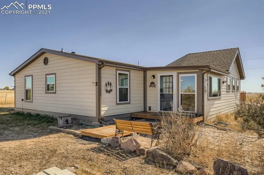 Welcome to your very own country oasis! This beautiful property sits on a massive 5-acre lot with amazing views of Pikes Peak and the mountain range. This stunning home is located only 5 minutes (2.5 miles) to the center of Falcon, providing almost immediate access to various shopping and dining options. The ranch style floorplan offers 5 bedrooms, an office/or 6th non-conforming bedroom, a recreational room, 2 bathrooms, a large dining room, and a centrally located living room and kitchen. This nicely sized dining room opens to a 345 square foot wooden deck with built-in lighting, perfect for entertaining or a quiet barbeque. Views from the back deck won't disappoint! The cozy kitchen comes with all appliances to include a gas stovetop, new backsplash, plenty of counter and storage space with an attached pantry. The sellers took amazing care of this property and were more than halfway through a complete remodel! The interior has been freshly painted and it's ready for new owners!This custom beauty comes with a new roof, new siding, new windows, and freshly installed solar panels added in 2017. The owners added a 6.380 KW Solar Panel System with Micro Inverters. This upgrade is completely paid off and substantially reduces the electricity expense at this location! In addition, the property comes with two detached sheds that provide ample room for storage, along with two dog runs that come fully fenced and ready for use. The grounds come with a gazebo for shade in the summer, a horseshoe pit for entertaining, and even a tetherball set.