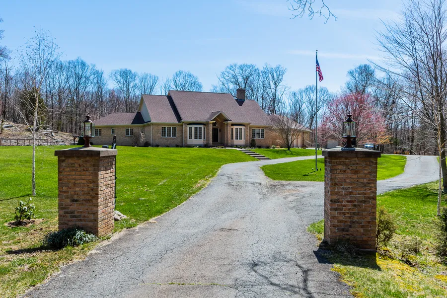 A true masterpiece of one floor floor living, luxury & privacy set on 26+ very private acres! Large family, like to entertain, have elderly parents or adult children? Then this incredible home is a dream come true! This impeccably built & spacious ranch style home offers all the luxuries that modern living can afford with the ability to cater to a large family. The open & airy kitchen deliveries a large eat-in area with gourmet amenities to include a substantial island with servers bar, granite counters, Vitrolux cabinets, stainless Subzero & Dacor dual ovens. The kitchen peers flawlessly into the sunken & open living room with fireplace & French sliders to the expansive blue stone patios & heated in-ground pool beyond. Across the centered hallway are the well appointed sunken den/billard room, formal dining & main foyer. From the main foyer are two wings set off on 90* angles, the sleeping quarter on one wing & the office, excercise room & attached but separate in-law suite on the other. The sleeping quarter wing features the master bedroom suite & two ancillary bedrooms which are connected by a Jack & Jill full bath. The opposite wing ends with an amazing in-law suite ideal as it's namesake, guest quarter or just additional living space. As if the main living level didn't offer enough, the lower level provides 3300 sqft of additional living space with a huge family room, gaming room, office & workshop. Other benefits are a 3 bay garage, brick shed & full home generator.