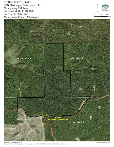The tract is situated in Sections 7 and 18, Township 17 North, Range 7 East and Section 13, Township 17 North, Range 6 East, Montgomery County, Mississippi. The lat/long of the main gate is 33.341143, -89.609704 and the combination to the gate is 4006. Google Maps shows the location as 350 Pine Bluff Rd, MS (no town) iPhone maps lists the address as 350 Pine Bluff Rd., Vaiden MS