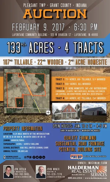 Auction Location: LaFontaine Community Building: 105 W Branson St, LaFontaine, IN 46990
