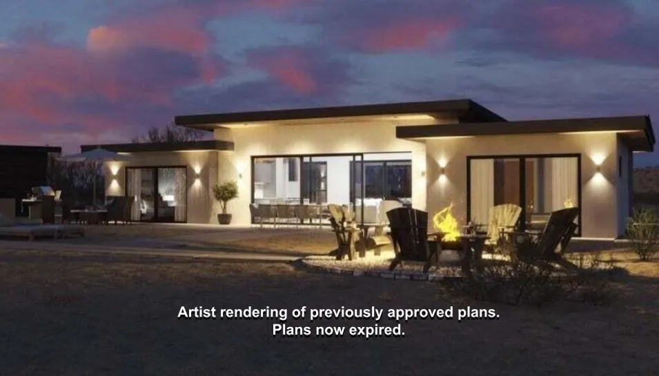 Mid-Century cabin seeks architect, artist, contractor or creative person to bring back to life! As is, where is, present condition sale Cash or Owner May Carry Financing terms only. Sold home comps 3 blocks away recently closed for $630,000 for a small 1,350 square foot home. Current listings with the Twentynine Palms zip code on market for $550,000+. Plenty of room for a designer or builder to make a dream home or flip. This is the furthest north of North JT where dirt roads and 4x4 country are the norm. Property features a 5-Acre lot with Gov Open Space / BLM land on 3 sides of property that connects to a patchwork of several hundred acres of open space land for horses, hikes, ATV riding, and dog walking. County says property can be rehabbed with plans. Owner started plans but never finished. Property is down to the studs. Electricity was connected and pole on property ready to be re-connected. Water meter on and functioning. Joshua Tree is becoming an internationally know community with a high demand for luxury ranches and privacy. Invest in the future. For any questions on zoning, usage, remodel permits, etc. Please contact the San Bernardino County Planning Dept and provide APN: 0632-141-18-0000 for all rehab and development questions. Paid plans to be transferred to Buyer through Escrow only. Finish project or use them to expand your dream vision. Priced to sell!