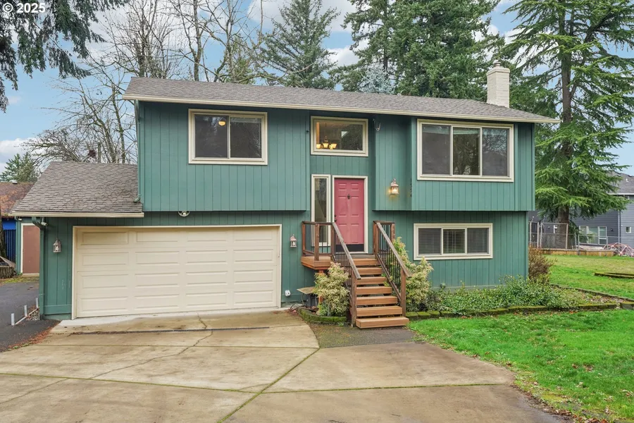 Discover this well-maintained 3-bedroom, 2-bath split-level home tucked away on a private flag lot in Portland. Built in 1985, this 1,544 sq ft residence offers a comfortable and functional layout with vaulted ceilings, a cozy gas fireplace, and generous natural light. The kitchen features quartz countertops, stainless steel appliances, an island, and wood floors-perfect for everyday living and entertaining. The primary bedroom includes a walk-in closet, ceiling fan, and fireplace for added comfort. Enjoy year-round outdoor living with a covered deck, fire pit, spacious yard, RV parking, and tool shed, all surrounded by mature trees for privacy. Additional highlights include central air, forced-air gas heat, fiber internet, double-pane windows, and an attached 2-car garage. Easy to show-appliances included. [Home Energy Score = 3. HES Report