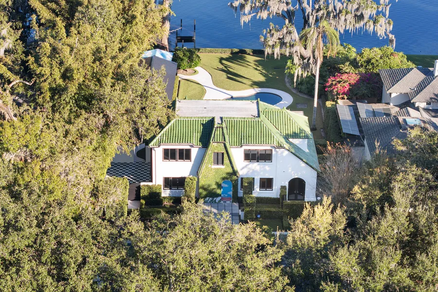 Steeped in history and masterfully reimagined, this 1926 Winter Park estate blends architectural provenance with modern refinement. Thoughtfully restored by E2 Homes, the residence honors its past while offering contemporary sophistication. Unlike many historic properties, it is free from preservation restrictions, allowing for seamless enhancements. On the shores of Lake Virginia along the desirable Winter Park Chain of Lakes, this 3,181-square-foot estate features four bedrooms, three full baths and two half baths, with three bedrooms in the main house plus a detached one-bedroom guest cottage. The second-floor primary suite is a private retreat with a Juliet balcony, dual closets and an elegantly appointed bath with an expansive dual-sink vanity, a separate water closet, and a washroom with a shower-tub combination. A Jack and Jill bath, adorned with Maharam wallpaper, serves the additional upstairs bedrooms. The Poliform Twelve kitchen showcases European craftsmanship with Gaggenau and Sub-Zero appliances, sleek Italian cabinetry and natural basalt countertops. The formal dining room, framed by arched windows and French doors, opens to a vine-covered courtyard, while the sunroom offers uninterrupted lake views. A fireplace in the living room, flanked by custom built-ins, adds warmth to the home's contemporary aesthetic. Beyond its striking interiors, the estate is an architectural rarity, featuring original woodwork by Gene Leedy, a key figure in the Sarasota School of Architecture. The home is crowned with sought-after Ludowici-Celadon Imperial roof tiles. Poliform built-ins extend throughout, including a dedicated upstairs office/library. An integration of art and architecture, the property features site-specific installations by acclaimed artist Matt Olson. His No Separation project finds a compelling continuation here. The entryway, designed by Olson's firm OOIEE and inspired by Sol LeWitt, makes a striking first impression. Designed for seamless indoor-outdoor living, the estate's exterior spaces are as refined as its interiors. A covered deck overlooks a heated saltwater pool. A wood-clad pergola shelters the lanai. The boathouse includes a partial bath, creating a waterfront sanctuary. A Sonos-integrated sound system extends from the main house to the patio, guesthouse and boathouse, ensuring a seamless sensory experience. The detached guesthouse is a private retreat with a full bedroom, bath, kitchenette and Poliform built-ins. Floor-to-ceiling windows frame manicured grounds and lake views, while a private covered porch provides a tranquil space for relaxation. Every detail has been meticulously curated, from designer lighting to motorized roller shades and a wood-burning fireplace anchoring the living room. A private wine library enhances the home's sophisticated appeal. Meticulously maintained by E2 Concierge services, the residence undergoes routine wellness checks and meticulous upkeep. A distinctive home of this caliber is rarely available, a residence where history, architecture and art converge in harmony. This is a once-in-a-lifetime opportunity to own one of Winter Park's architecturally and artistically significant properties.