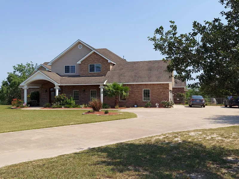 Beautiful custom-designed country home on 39 acr adjoins Wildlife Refuge. Amazing foyer w/ brick wall accent flows into living rm w/ open concept, high ceilings w/ fans, crown moldings, built-ins, gorgeous hardwood floors. Kitchen is a chef's delight w/ Designer brand appliances, granite counter-tops, large island & custom-designed cabinets. Master suite w/ amazing features (see list). Other areas include breakfast nook, Office, Utility/Laundry/Pantry Combo w/ XL sink, lots of storage, W/D conn., & room for Lg appliances, guest BR w/ built-in desk, antique-style separate bath, 8-ft saloon-style bar w/ display for spirits w/ icemaker. 2nd Floor has lg gameroom w/ wet bar, 2 lg BRs, 1 w/i closet with access to storage. Upstairs balcony w/ gorgeous view of waterfront Refuge & Lg 4-stall barn.
