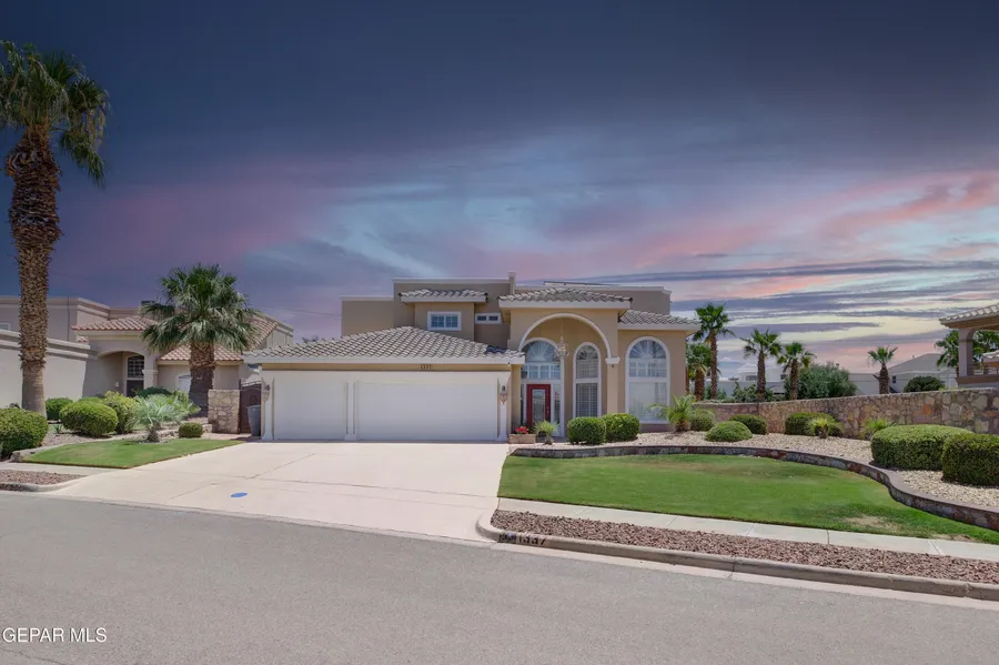 Welcome to 1337 Emerald Gate Lane-a beautifully maintained 4-bedroom, 3-bath home nestled in the desirable Stone Gate neighborhood in East El Paso. With 3,331 sqft of living space, this two-story gem features two spacious living areas, a formal dining room, and a bright kitchen with ample cabinet and counter space and a breakfast nook. Upstairs the oversized primary suite includes 2 walk-in closets, dual vanities, a walk-in shower and a soaking tub. You'll find generously sized bedrooms, perfect for a growing household or home office needs. Step outside to a fully landscaped backyard with a covered patio and large pool and spa-ideal for entertaining or relaxing after a long day. Additional highlights include paid off solar panels, refrigerated air, a three car garage, and a wet bar. Located near top-rated schools, parks, shopping, and dining, with quick access to Loop 375 and I-10. This move-in ready home combines comfort, convenience, and value-don't miss your chance to make it yours!