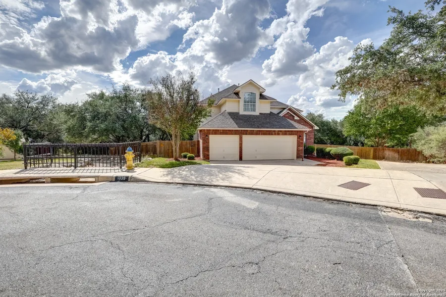 Nestled on a serene 1/3-acre secluded greenbelt lot, this immaculate one-owner custom home offers a large interior space on a large lot in one of the area's most sought-after neighborhoods. With 4 spacious bedrooms, 3 full baths, and a thoughtfully designed two-story layout, this home perfectly balances comfort and space. Step inside to discover a well-maintained interior with some tasteful updates, showcasing pride of ownership in every room. The heart of the home features an inviting living space that flows effortlessly into the kitchen and dining areas, ideal for both everyday living and entertaining. Upstairs, the huge primary suite sits next to a game room with a large private balcony, the perfect spot to enjoy the oversized cul-de-sac lot and peaceful greenbelt views. Downstairs, the grand covered patio is made for gatherings, grilling, or simply relaxing in your backyard retreat with no rear neighbors. Additional features include a 3-car garage, mature landscaping, and plenty of room to add a pool or garden. The Vineyard offers access to a community pool, sports courts, playground, and NEISD schools. Don't miss this private gem with space to grow and room to breathe.
