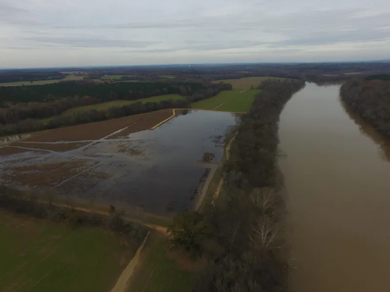 The property has a +/-25 acre waterfowl impoundment located adjacent to the river. The impoundment has multiple flood control structures installed to control the water level. There are three (3) pit blinds already installed and ready to use. All are easily accessible by vehicle/UTV.