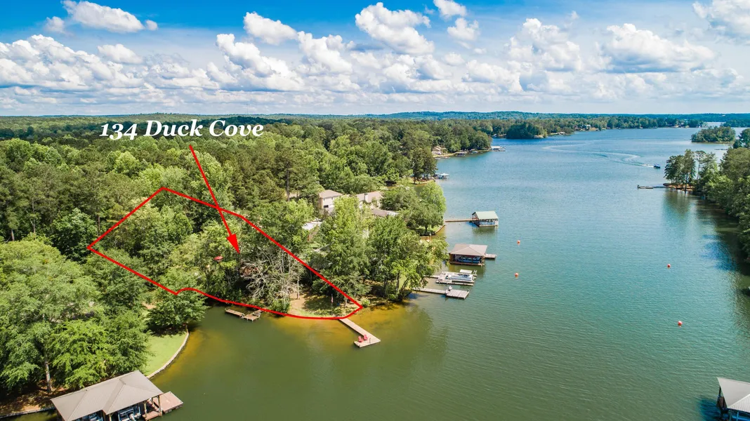 Transform this 5 bed, 3 bath cabin into your dream home and start enjoying life on the lake. A multi-level deck offers plenty of room for outdoor entertaining or invite guests to join you on the screened porch with an attached workshop. The backyard includes two lots, two private piers, a boat ramp, storage barn and covered parking. The open concept floor plan offers flexibility with a large great room and dining area plus a wall of windows for great views! The kitchen features rows of white cabinetry and plenty of serving and prep space. The master suite is a peaceful retreat with a jetted tub and separate shower. Four additional bedrooms provide comfort and privacy for all! The lower level features a second gathering space with access to the screened porch.