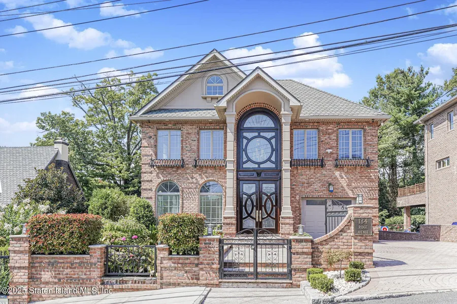 Welcome Home to Luxury Living in Prestigious Dongan Hills Colony! This Palatial Tuscan Villa Style, 4-bedroom, 4-bath all-brick custom Center Hall Colonial has been completely renovated in 2023 with no detail overlooked. Perched high with stunning water and tower views, this home offers elegance, sophistication, and the ultimate in modern living. From the moment you arrive, you'll be impressed by the all-brick exterior with wrought iron details, custom pavers, and fencing, leading to an entertainer's dream backyard. Enjoy a heated saltwater in-ground pool, full outdoor kitchen, outdoor living room, and ample space for lavish gatherings. Inside, a grand two-story entryway with 26 ft ceilings and brand-new double doors sets the tone. The main level features 9 ft ceilings, custom moldings, radiant heat throughout, and a seamless flow of living space. The large living room and dining area lead to a custom chef's eat-in kitchen with commercial-grade appliances, an oversized island, fireplace, and direct access to the balcony and yard. A stylish powder room and garage with custom cabinetry complete this floor. The daylight full finished basement is a home within a home, wet bar, den with fireplace, living room, bathroom, laundry, utility, and abundant closets. The second floor showcases a luxurious primary suite with balcony, walk-in closet, and spa-like custom European bath. Additional bedrooms are spacious and beautifully designed, including one with a custom staircase to a fully finished third-floor attic retreat. A brand-new hallway bathroom completes this level. This home is a true masterpiece inside and out-combining modern design, luxurious finishes, and resort-style amenities in one of Staten Island's most prestigious neighborhoods. Don't miss this rare opportunity-call today for your private showing!