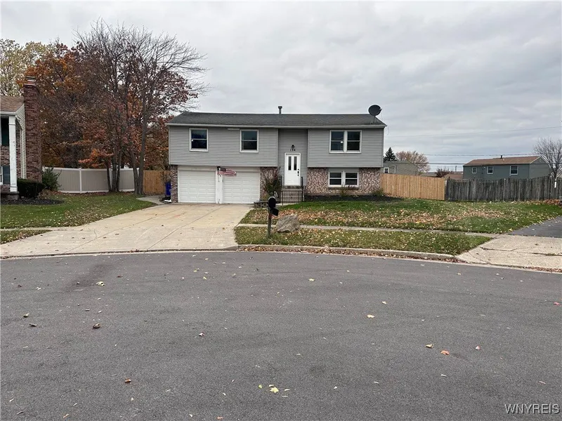 Welcome to this spacious raised ranch perfectly situated on a quiet cul-de-sac in the highly sought-after West Seneca School District. This home offers a bright and inviting layout with generous living and dining spaces, 3 bedrooms, and 2.5 baths, creating a comfortable and versatile floor plan ideal for everyday living and entertaining. Enjoy additional living space in the beautifully finished partial basement, perfect for a cozy family room, home office, gym, or media area. A large two-car garage with dedicated workspace offers excellent storage and room for tools, hobbies, or projects. Step outside and experience an expansive outdoor setting rarely found in the area. The oversized fully fenced yard provides endless space for play, pets, gardening, and gatherings. A spacious concrete patio, large wooden deck, and inviting above-ground pool create the perfect backdrop for summer fun. The 3-season room stands out with a built-in bar, a fantastic indoor-outdoor space for hosting friends, enjoying morning coffee, or unwinding in a relaxed setting. Conveniently located close to shopping, dining, parks, and major routes for an easy commute. This home blends space, flexibility, and lifestyle in an unbeatable location. Offers will be reviewed as they are received. Seller reserves the right to set a review date. OPEN HOUSE Sat. 11/8 12-2pm