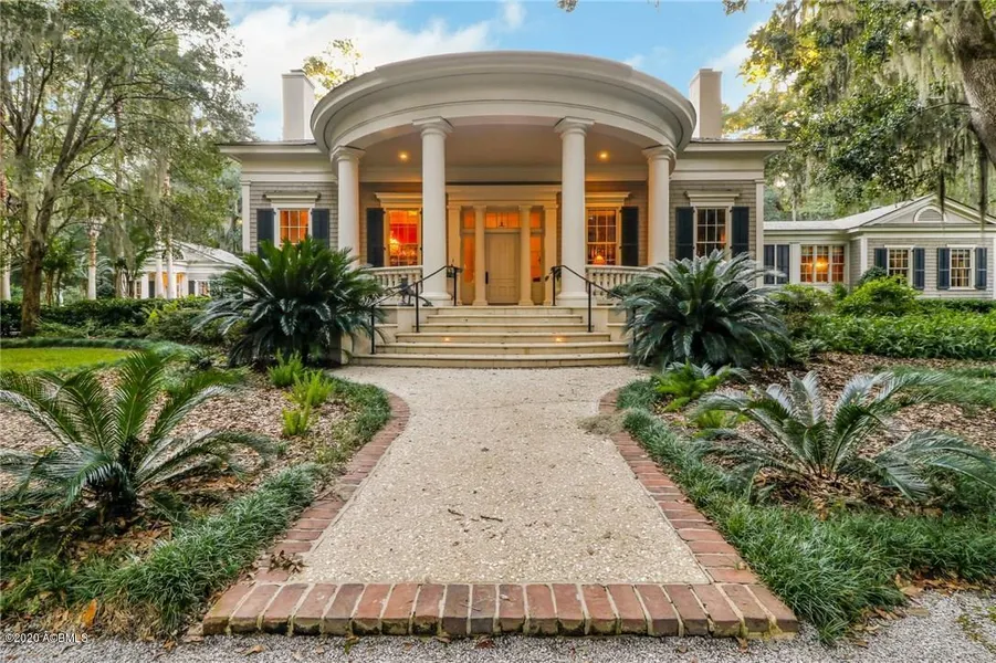 This sprawling Southern Plantation estate, by renowned architect, Jim Strickland/Historical Concepts was designed to be one with nature and an entertainers home. It's perfectly situated under century old moss-draped oaks on a 7+ acre equestrian original founders lot, featuring almost 1/2 miles of meandering driveway past the stocked Twin Pipes Pond. The entire home is nothing short of spectacular and is sure to impress the most discerning buyers with 18ft soaring ceilings, exotic on-site woodwork, 5 fireplaces, generous verandas, art studio, 2 master suites, a 2bed/2bath guest cottage, large barn, fenced vegetable gardens and ample storage.