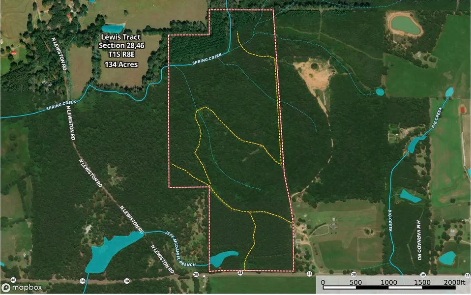 Over 134 acre tract less than 6 miles East of Kentwood. Excellent recreational and hunting tract. South boundary of the tract has over 1200' of frontage on Hwy 38, with power and public water available at the highway. The pine timber has been harvested, yet the hardwood timber is intact along the drain areas and there is residual hardwood standing throughout the tract creating an excellent habitat for deer and all wildlife. Spring Creek traverses the North sector of the tract, and there is a pond on the South part of the tract. There is a connecting system of trails within the property. Tremendous elevation that ranges from 320' on the hilltops with the terrain falling to 280' along Spring Creek and the ephemeral drains.