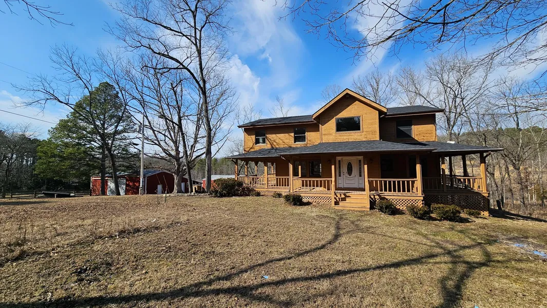 This 135 acres with a 2 bedroom, 2 bath home with wrap-around porch, office and unfinished basement, multiple barns/sheds, live water, beautiful rolling pastures and distance views. The two-story home was built in 1987 and has recently been updated with a new roof, flooring, interior paint, light fixtures and fans. It has a large master bedroom and kitchen, and the living room has a beautiful stone fireplace. The basement has a garage, and could be finished with more bedrooms.