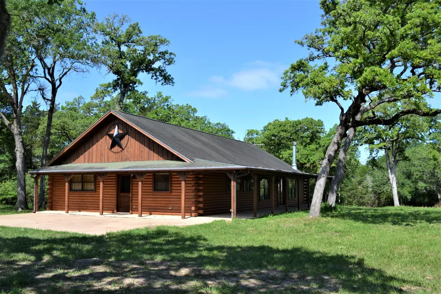 This extremely private and extraordinarily quiet 48 acres is accessed by an electric gate and winding road through the woods to the log cabin style home. For 20+ years the land has been free of livestock. The current owners have worked diligently for 50 years as stewards of the land with a wildlife tax valuation currently in place with amazing native grass pastures, huge native hardwoods, wet weather creek, pond, and lots of bluebird houses.