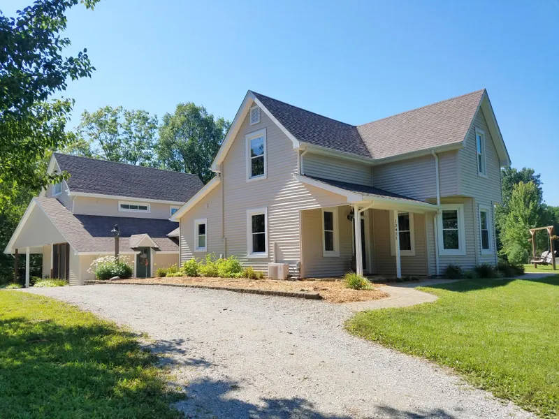 Reminiscent of another era-Reproduction farmhouse with dramatic dining room connecting barn-style living area comprising FR, MBR suite w/31x10 room devoted to closet/storage. Well balanced exterior design, creative & comfortable living space. Dining room catches the eye w/stone floor, wall of windows w/private view, stone fireplace & freestanding wood stove. Spacious kitchen opens to breakfast nook, office, laundry/mud room & FBA. 32x14 family room. 2 bedrooms, loft sitting area & FBA w/claw foot tub upstairs on one end. Peaceful MBR on the other, MBA double sinks, shower, custom stairs up to huge closet/storage space. Beautiful wood details. Plenty of open lawn surrounded by woods, 1-car detached garage/storage. Spotless.