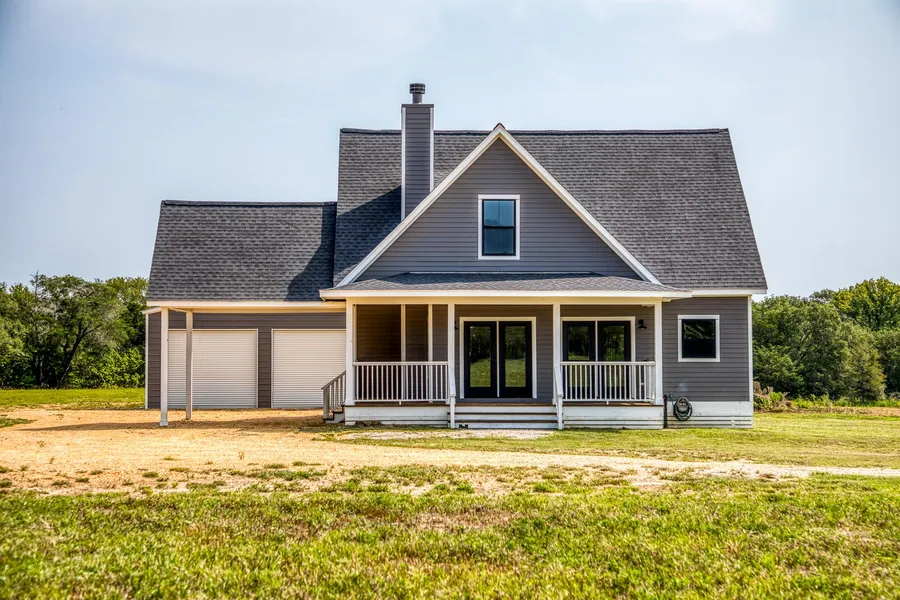 Welcome to your dream home! Nestled on +/- 9 acres under ag. valuation of serene countryside, this stunning 3-bedroom, 2-bathroom modern farmhouse offers the perfect blend of luxury and comfort. Step into the inviting living area featuring gorgeous real hardwood floors that span the entire first floor. Cozy up by the charming wood-burning fireplace. The kitchen is a chef's dream with granite countertops, abundant cabinet space, like-new stainless-steel appliances, and a spacious pantry for all your storage needs. Located on the main floor, the primary bedroom with en-suite bathroom is elegantly appointed with dual sinks, matching granite countertops, ample cabinet space, a grand walk-in shower, and a gracious walk-in closet. Upstairs features two comfortable private guest bedrooms, and a versatile flex room that can easily be transformed into an additional bedroom or study. The upstairs bathroom includes a shower/tub combo and continues the home's luxurious theme with matching cabinets, tile, and granite countertops. Outside, you'll find a 30x40 garage/shop on concrete slab with overhang and double roll up doors. This building can be used for extra storage, a workshop, or recreational space. This modern farmhouse is great for those seeking a peaceful rural lifestyle with all the modern conveniences. Don't miss the opportunity to make this beautiful property your forever home!