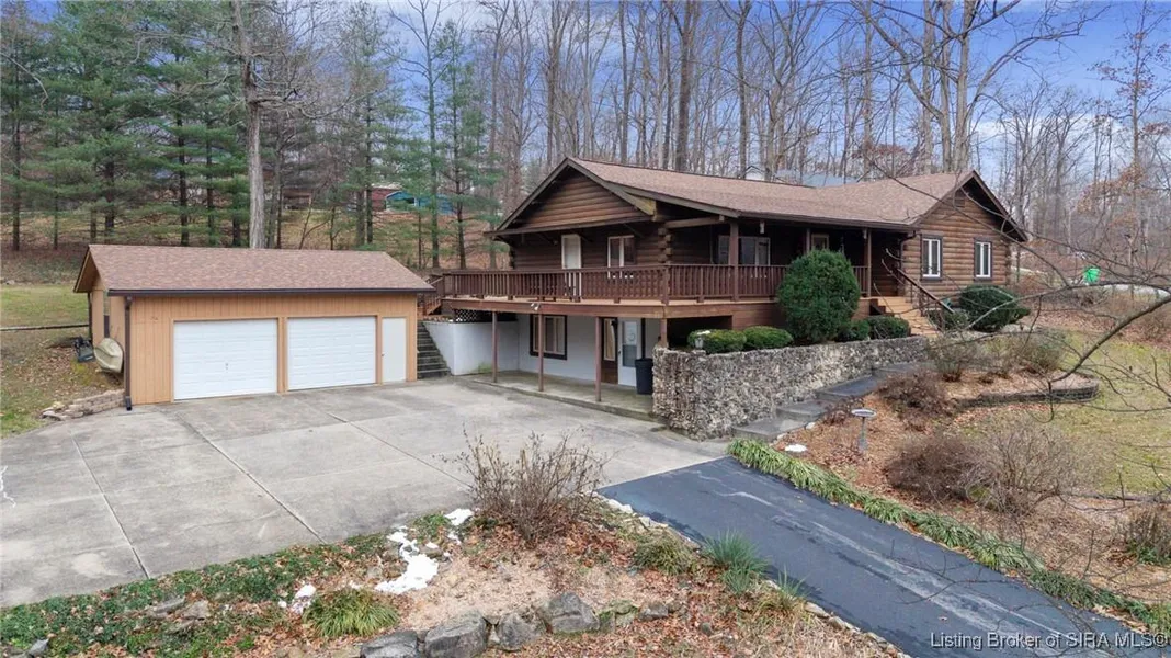 First Time on Market! Lanesville Ranch w/walkout. Welcome home to highly sought-after Lanesville in Floyd County! For the very first time, this lovingly maintained property is being offered for sale. Boasting approx. 2,500 sq. ft. of finished living space, this home features 3 bedrooms and 3 FULL bathrooms, blending interior comfort with an outdoor oasis. The main level offers a warm layout with a separate formal dining area and a living space highlighted by a stone fireplace. The primary bedroom includes a private ensuite bath. Need storage? The attic features easy hall access and is completely floored/finished, providing wonderful space for seasonal items, Lower level has oversized storage areas. There's a nice 2 car garage and a shed for storage. Downstairs, the basement is an entertainer's dream, featuring a massive family room and a cozy wood-burning stove. The exterior is truly a showstopper. A huge covered front porch connects to a side deck, perfect for morning coffee while overlooking the impeccably manicured yard. You will love the serenity of the lush landscaping and beautiful Koi pondsa private retreat right at home. Peace of mind comes standard here with major updates completed: The ROOF was just replaced in 2023, water heater (2023), and the furnace and A/C have been well-maintained (approx. 12 years old), and new casement windows were installed in 2012. All the big-ticket items are handled. This Lanesville treasure wont last long. Sq ft & rm sz approx.