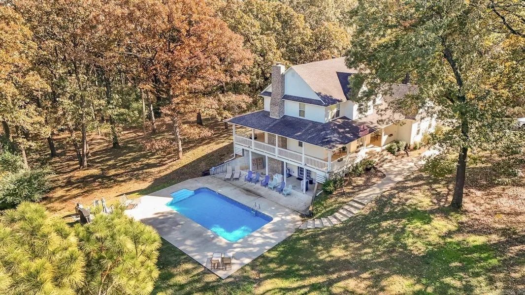 One-of-a-Kind Country Escape on 11.69 Private Acres! This stunning property offers the peace and privacy you’ve been searching for. The spacious two-story home with a walk-out basement includes 3 bedrooms, an office, 2 full baths, 2 half baths, plus an additional shower in the laundry room, giving you unmatched convenience. Inside, you’ll love the granite countertops throughout, and a cozy wood-burning fireplace. The finished basement serves as a second living area and opens directly to the 16' x 32' in-ground pool, creating an ideal indoor/outdoor entertaining space. This home also features a FEMA-spec, county-registered safe room, a 2-car garage, a laundry chute, and two central heat & air units for efficient heating and cooling across both levels. Kitchen appliances convey. Step outside and enjoy the quiet country setting from the three-sided wrap-around porch, perfect for morning coffee, evening relaxation, or watching wildlife across your private acreage. This property truly feels like its own retreat.
