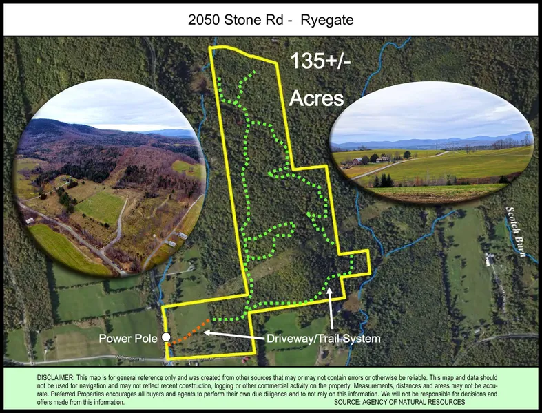 An excellent property of 135+/- acres, perfect for the avid outdoorsperson interested in homesteading, hunting, or recreation in Ryegate, VT. The mixture of productive hay fields and wooded pasture land adjacent to the road frontage make for an excellent potential country home site, accented by vintage stonewalls and quaint streams. Owner has installed an excellent driveway complete with culverts. The views from much of the property are simply outstanding. The sprawling eastern side of the property features open and rolling woodlands – predominantly softwoods to the north and a smaller section of hardwoods to the south. These open woodlands and surrounding active agricultural fields make a terrific corridor for deer, moose, and grouse hunting. Looking for a long range shot? Hunt the apple tress under that 150 foot wide industrial power line running the short width of the property. Property was logged during the dry summer of 2016 and there is an incredible network of trails, spanning the entire parcel, perfect for ATVs, hiking, horseback riding or even snowmobiling. These are not your typical rutted logging roads, but have been back-dragged and smoothed. Property would make an excellent private ATV/Motocross terrain park for your family. Build a rustic cabin on one of the several elevated sites, offering stunning long range views of rolling mountains and optimal privacy.