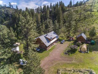 Secluded, end-of-the-road, nestled in the canyon, behind a locked gate. Marvin windows. Large pantry with an 8' X 8' X 8' root cellar which can be accessed through pantry. Roper, energy-saver refrigerator and gas stove/ oven included. Part of the Gary Cooper Ranch in the Big Belt Mountains. Enjoy hunting, fishing, horseback riding, peace and quiet. Road to access is quite rocky/rough, but it is insurable & year round. Off the grid with solar, wind, propane, wood, generators. This is definitely a must-see-to-appreciate property. Sellers ask that all buyers be pre-qualified before showing. Square footage is approximate; buyer to verify. This is a cash buyer or in-house loan property. Most lenders wanting 25% down to qualify because over 40 acres and off grid. Won't go FHA, per lenders.
