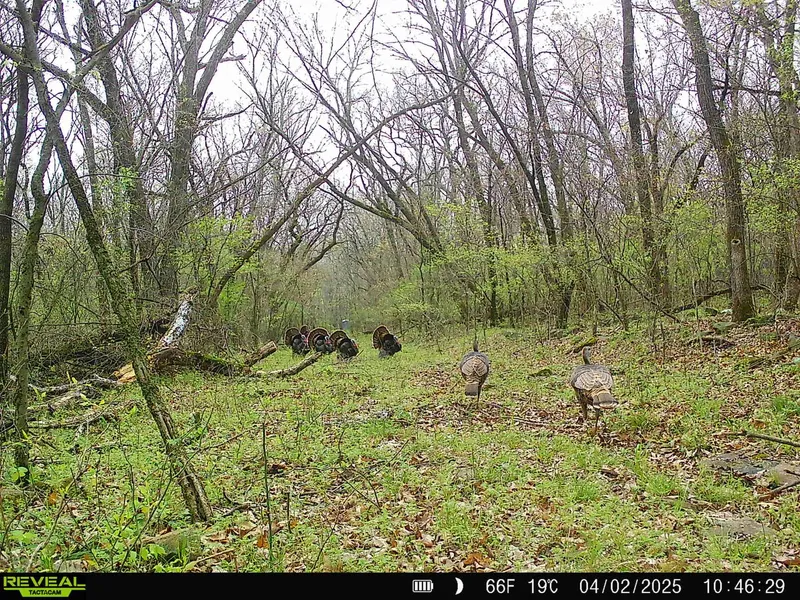 For hunting enthusiasts, this property offers abundant wildlife. Well-established whitetail deer trails crisscross the land, some so defined they could be mistaken for cattle paths. Turkey scratching is evident on the timbered hillsides, and gobbles can be heard in the crisp spring air. With two ponds on the property and its location less than 300 yards from the Grand River, waterfowl are frequent visitors. Wood ducks have been seen using the secluded spring-fed pond, while geese are often spotted loafing on the pond at the east end of the property.