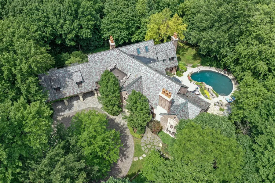 Old World craftsmanship comes alive in this stately brick and stone manor designed and meticulously constructed by Demari Development. From the very first moment you enter the home, you are greeted by rich detailing that simply can't be replicated today: intricate millwork, wood paneling, arched doorways, plaster and coffered ceilings, ancient stone fireplaces and a beautiful blend of hardwood and stone floors. The main level balances classical design and modern amenities with a variety of spaces for both grand entertaining and casual gatherings. The formal living room, dining room, library and family room all overlook the private backyard, with many of these rooms opening to the outdoors. The gourmet kitchen is touched with Wolf appliances, a large center island, dining space, catering/prep room and convenient butler's pantry leading to the dining room. A screened porch, massive laundry room, mudroom and large attached three-car garage complete the main floor. Entertaining can easily move into the finished English basement, where you'll find a second kitchen, full bathroom, exercise room, an ensuite bedroom, rec room, theater room and a potential wine cellar. Up the sweeping front staircase, you'll find the elegant master wing through the double door entry. A cathedral ceiling, stone windows and a stone fireplace add to the sense of romance emanating through the suite which includes a large, private bath featuring a soaking tub, separate steam shower, built-ins, dual vanities and a large dressing room plus a walk-in closet. The other wing consists of four beautifully detailed family bedrooms and three full bathrooms. The private finished third floor offers a sitting room, bedroom and bath. Beyond the interiors, the tranquility of the outdoors awaits in the backyard, where you'll discover a true oasis with a stone terrace, pool, waterfall, BBQ and manicured lawn - all kept serenely private by tall, mature trees. This finely crafted home and property is a one-of-a kind offering with extreme quality and privacy - don't miss the opportunity to experience it for yourself.