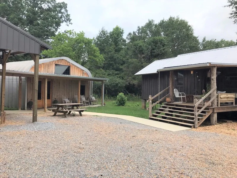 This is the perfect place to entertain and get away from it all. 8.6+/- secluded acres that includes: 2 or 3 bedroom cabin. 25' x 25' Guest house with sleeping loft. Everything in both is all new. Spray foam insulation, tankless water heaters, granite counter tops, new roof. There is also a 48' x 48' covered pavilion with power, a storage shed that has been spray foamed, and a 48' x 48' new barn.