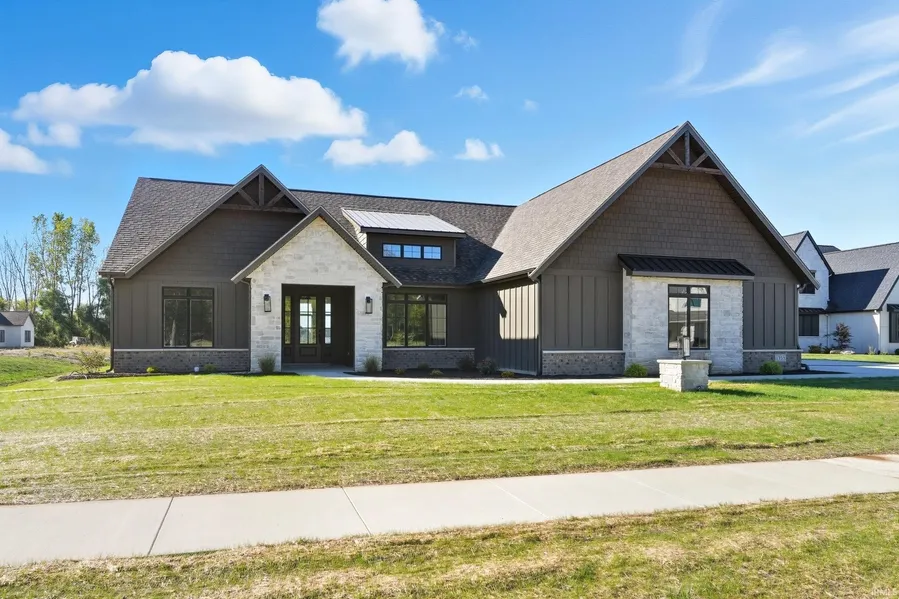 Another stunning home by Carriage place homes. This 2500 sqft ranch home has been carefully designed inside and out to be a spectacular example of what this builder has to offer. Step into a large foyer and immediately notice custom flooring, beautiful wood ceilings, and unmatched quality such as solid wood doors and trim, high end windows, and much more. The kitchen is stunning with floor to ceiling cabinets, quartz counters, cabinet lighting, and custom backsplash. The large dining room has a built in buffet with beverage fridge with even more storage and counter space in the walk in pantry. The great room features a stained wood beamed ceiling and a stone fireplace. The office/4th bedroom is private with a closet. You'll see a striking ceiling in the owners suite with a spa-like bath boasting a 7x6 custom tile shower and a two story closet. The screened porch leads to the concrete patio and view of the large pond. The garage is beyond oversized with a 28ft long third bay and access to additional attic storage. Close to Parkview and connected to the Pufferbelly trail!