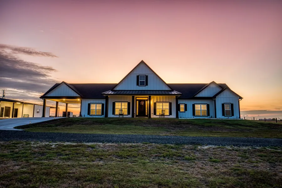 This thoughtfully designed farmhouse built in 2021 offers hilltop views and inspiring sunrises and sunsets.