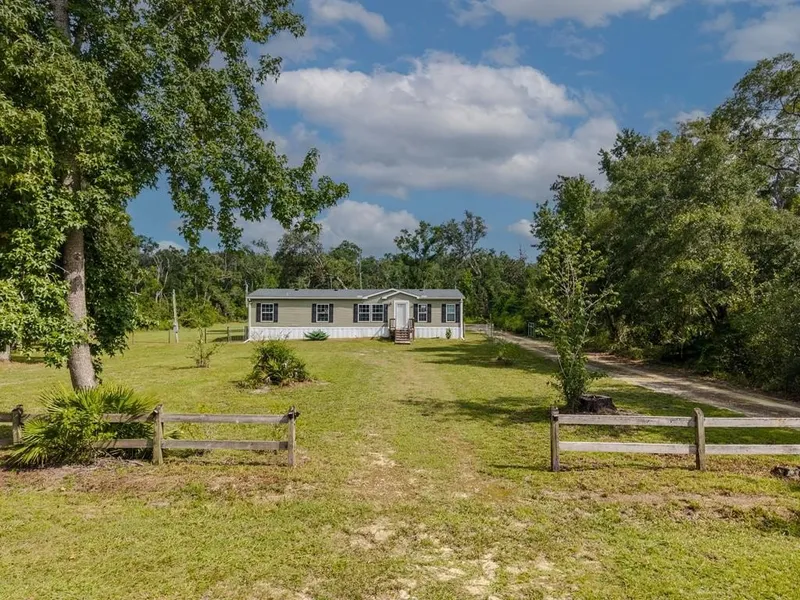 Welcome Home! This stunning 3-bedroom, 2-bathroom manufactured home offers beautiful modern touches and a spacious open floor plan. Inside, you'll find wood accent walls, crown molding, and an inviting living area with an electric fireplace and wood mantle. The kitchen is a showstopper, featuring open shelving, a coffee bar, upgraded fixtures, and a sit-down island with a granite countertop. The master suite includes his and her sinks, a tiled shower, garden tub, separate toilet room, and a huge walk-in closet. Both spare bedrooms also offer walk-in closets, while the large utility room connecting to the master bathroom provides extra convenience & plenty of storage space! Outside, enjoy a fully fenced and gated yard with a lime rock circular drive, a 2-car detached carport, and a utility shed. This move-in ready home combines comfort and style with a new hot water heater, new dishwasher and other thoughtful upgrades throughout. Don't miss your chance to own this beautiful property in peaceful Old Town! This home qualifies for VA, FHA, USDA & Conventional loan options! Call today to schedule a showing, you won't be disappointed!