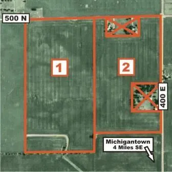 Property is located four miles northwest of Michigantown, Indiana on 400 E and 500 N.