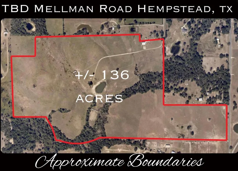 Research Parcel InformationFROM FM-1488 Hempstead, TX 77445 United States 0.8 miles Turn left onto FM-1488 1 miles Turn left onto Mitchell Rd 1.6 miles Turn left onto Tompkins Rd 1.4 miles Turn right onto FM-1736 0.4 miles Keep left onto Mellman Rd. 0.2 miles Turn left 400 ft Arrive at the destination Please use Mellman Road to access property