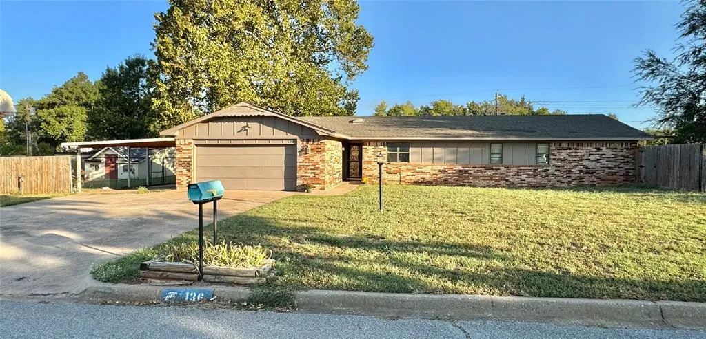 Can you say WOW?! This is a 4 bedroom brick home right at 2300 square feet with a 2 car garage and an additional carport! Location is the back of a neighborhood, so not a lot of traffic. Come inside to a central living room with an open kitchen, with two skylights allowing for more natural light. There is a bedroom just off the living room, which can even be converted into a den if you prefer. The large primary bedroom sports two closets and a fireplace, creating a haven of rest, and a door leading out into the large back yard. By the laundry room you will find an extra storage room. There is so much built in storage areas throughout this home. There is also an indoor underground shelter to keep your family safe from Oklahoma weather. Out back, the spacious fenced yard with a double gate boasts a concrete covered patio/additional carport, perfect for entertaining and grilling or to use as a covered play area for the kids. SELLERS ARE OFFERING A HOME WARRANTY FOR PEACE OF MIND!