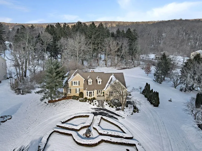 OFFER DEADLINE Sun. 1/30 @8pm. This custom-built home sits on 1 acre. The grand foyer leads to a spacious living room with soaring vaulted ceilings and a striking stone fireplace. Four bedrooms, with owner suite on the 1st and 2nd floor, three full baths, and two half baths. First floor den and a bonus room on the second floor, perfect for a 2nd den. The large deck overlooks a beautiful lot with mature trees and is accessible from the living room, first-floor owner suite, and kitchen. The kitchen is a chef's joy with a double oven, stainless appliances, ample counter space, with an elegant dining room for entertaining. An abundance of storage, a finished walk-out lower level, a 3 car sideload garage, and stately circular driveway welcomes guests to this impressive estate.