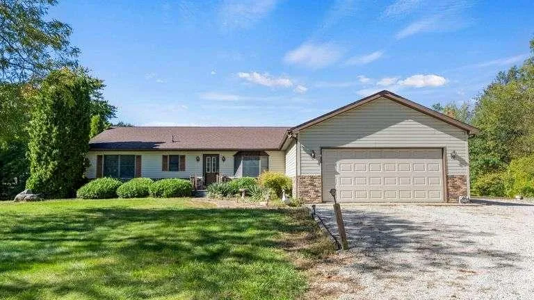 3-4 bedroom, 2 full & 2 half bath home nestled on 6 picturesque acres, offering a true park-like setting. Step inside to find a cozy living room featuring a charming gas fireplace, creating a warm ambiance for those chilly evenings. An inviting kitchen seamlessly opens to the family room, perfect for entertaining and family gatherings. Retreat to the master suite, complete with an ensuite bathroom with a twin sink vanity, separate shower, & tub and a spacious walk-in closet. Enjoy the beauty of nature from the 3-season room, where you can unwind while taking in the serene views of your expansive property. The finished walk-out basement provides additional living space, featuring a large family room, a full bath, a versatile 4th bedroom or office with its own walk-in closet, and a convenient kitchenette, ideal for hosting guests. Ample storage rooms ensure everything has its place. The property also includes a 2-car attached garage with a workshop for your projects, a 24x50 pole barn with 3 overhead doors for additional vehicle storage or hobbies, and a tranquil pond that enhances the outdoor beauty. This home perfectly combines comfort, functionality, and nature, making it a rare find on the market. Great location just minutes from Syracuse Lake! Dont miss your chance to own this slice of paradise!