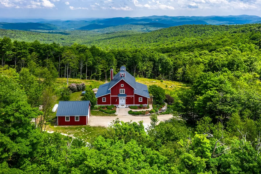 Perched on 4.5 acres bordering State Forest on sought-after Andover Ridge, this custom post and beam has been handsomely appointed and well maintained by its original owners. The front entry is warmed by hand painted walls and wood from a 19th century barn. French doors open into a great room with cathedral ceiling, a striking bluestone fireplace, and a panoramic view to Mount Monadnock. The open kitchen has Shaker cherry cabinets and granite counters. An adjoining mudroom with side entrance keeps your ski gear out of the living area. The light-filled office/studio leads to a cozy screen porch. A wraparound deck has Adirondack chairs where you can lounge with a drink and a good book, an umbrella table and chairs for al fresco dining, and a hot tub for relaxing under the stars. The private master suite is above the entry, and the main and lower floors each has a bedroom with Jack and Jill bath. The lower floor features a game room/entertainment room, a home gym, large laundry room, and a workshop/mechanical room with storage. Walk out to the swing and fire pit, stroll the mountain gardens or sled down your own hill. A detached garage provides space for vehicles, toys and equipment. Private yet close to VAST Trails, only 5 minutes from vibrant Weston with its famed Playhouse and Vermont Country Store, and 20 minutes to Okemo Mountain. Being sold furnished, with fiber optic internet and full house generator, this property has it all. Come see it before it's gone!