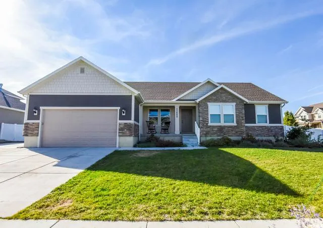 Stunning Herriman Rambler now available! This corner lot home has all the amenities you need. As you walk in be greeted by the formal living room/office which makes working from home a breeze. The kitchen is a masterpiece will gas range with double ovens, knotty alder cabinets with sliding drawers, soapstone farmhouse sink, island with bar seating, stainless steel appliances and granite countertops. The large dining space has plenty of room for large family dinners and leads out to a spacious patio with pergola perfect for entertaining family and friends. The home features large windows throughout providing a ton of natural light. The large master suite offers vaulted ceilings, large windows and an en-suite with soaking tub with large window, separate shower with euro glass, double vanities and a walk-in closet. The basement features a large great room with wet bar, plenty of counter space and room for a refrigerator making this the prefect spot for family and friends to gather and have fun! Other amenities include a wine cellar, 4k camera system and all upstairs rooms feature speakers and internet/ethernet access, hot water circulation and tons of storage/cold storage. The yard is fully fenced with a vegetable garden with a b hyve dripline system making watering simple and easy and fruit trees. The garage is extra deep and has shelving. There is also a French drain on the South side of the home. This home has it all! Don't wait, schedule your private executive showing today! **Floorplan attached** Buyer to verify all information. Square footage figures are provided as a courtesy estimate only. Buyer is advised to obtain an independent measurement.