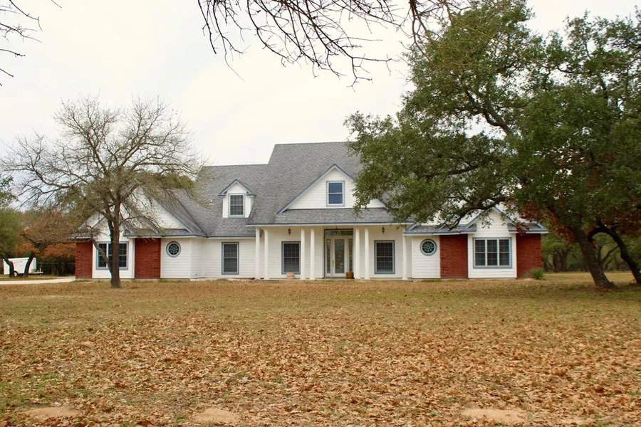 Well-crafted, quality construction,3BD/2.5BTH, 3,236 sq. ft. custom built Colonial style home on 5.16 acres in Devine. This beautiful home features high ceilings, a spacious living room with wood burning fireplace, formal dining + a separate breakfast area with bay windows, office and an upstairs bonus room complete with half bath and outside deck. Kitchen would be a delight for any cook with solid surface countertops, large island kitchen, walk-in pantry, breakfast bar, built in oven & microwave and smooth top range with downdraft venting. Master suite includes a a bay window as well as a spacious bath with jetted tub, walk-in shower and a wrap around double vanity. This energy efficient home takes a bite out of utility bills with high quality, double paned windows and a geo thermal heating and cooling system. Outdoor amenities include an expansive covered back patio with ceiling fans to view acres of manicured oaks, a high fenced area for gardening, a 15x40 metal building with electricity and access to water and septic for RV storage and a 25x20 metal shop with electricity (to include 220) and an air circulating filter throughout the shop. This amazing property offers life in the country coupled with innovation and convenience.