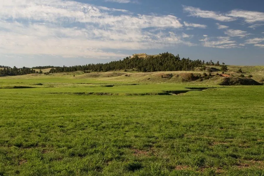The 13,700+/- acre Crockett Ranch lies in a contiguous block of almost entirely deeded land and sits nearly midway between the Big Horn Mountains and the Black Hills. During the winter and spring, one can see the snowcapped peaks of the Big Horns 90 miles to the west. The ranch begins about 10 miles north of Recluse and runs northerly for 7 miles along the county road towards the Montana border. The bulk of the ranch lies to the east of the county road with the lower meadows and several smaller pastures to the west. There are three drainages on the property. Although seasonal, these creeks can provide months of stock water and, in the spring and fall, attract migrating geese and ducks. Both sets of ranch improvements lie in the main Bitter Creek Valley near where two forks come together. The 1,200+/- acres of meadows are split between the Bitter Creek Valley and the upland pastures to the north. They are seeded to a dryland alfalfa/grass mix which attracts elk, mule deer, whitetail deer and pronghorn antelope. Most of the water on the ranch is provided by wells and spring fed stock tanks. There are 17 cross-fenced pastures which are positioned to allow easy livestock rotation. The ranch annually runs between 400 and 450 pairs in a cow-calf operation. The improvements include two very comfortable and well-maintained homes with views of the valley meadows and the timbered foothills that form the Bitter Creek Valley. There is also a small cabin to accommodate hunters. The operating improvements include a new steel three-stall equestrian barn, two steel equipment sheds, a large cow barn, and three sets of corrals with tubs and alleys. To summarize, all of the necessary pastures, water, and improvement infrastructure are in place for a profitable cattle operation. AND it should not go unmentioned that the Crockett Ranch offers some of the finest big game hunting in the state for mule deer, elk, upland birds, and antelope.