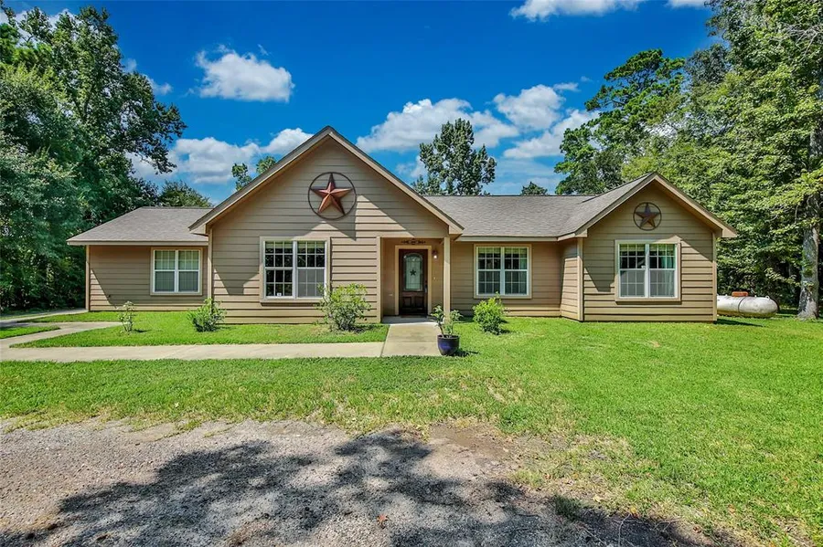 Perfectly situated on 5 private acres, this is that country property you have been searching for! You will love this charming home boasting custom finishes that do not disappoint! A stunning open floorplan makes this home ideal for family living and easy entertaining. The spacious family room boasts slate tile floors and is open to the kitchen and breakfast area. What a kitchen this is! Offering incredible finishes and a huge granite island for tons of work space means there are many things to love about this kitchen. The master suite is luxurious with plenty of space, a double-trey ceiling, rope accent lighting, and his & her reading lights. The master bath features a walk-in shower. Tranquil views await from your large back patio that overlooks the pond, barn, and pastures. BRING ON THE HORSES, COWS, GOATS, and CHICKENS! A two stall pole barn, goat stalls, and chicken coop await. Cross-fenced pastures... FIVE ACRES (209' x 1,022')! Conroe ISD. NO FLOODING DURING HARVEY!