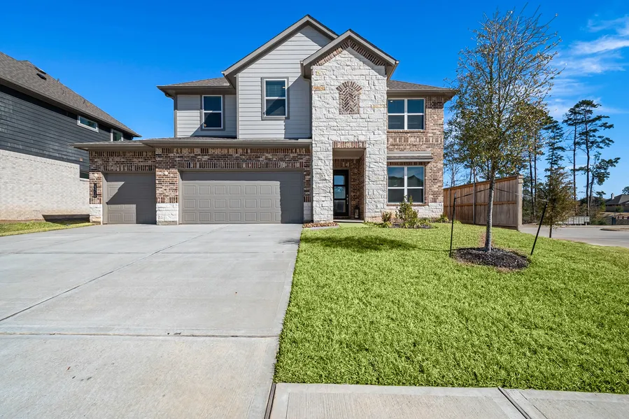 EXCEPTIONAL 4-Bedroom 2.5 Bathroom, 3 cars Garage SMART home features 20ft Ceilings; MODERN iron horizontal stair balusters; including separate office room. Located at highly desirable one of a kind ELEVATED; CORNER LOT at Fosters Ridge. FIRST GRADE quality ,subtle details and elegance. This home is equipped with professional ADT Security. Kitchen features Energy Star appliances a 5 burner gas range GRANITE island kitchen counter top, Reputable brand dishwasher; built in microwave . Seller maintains the home in a MINT condition. Full Sprinkler System. Nearby community recreational areas with pool and playground, walking trails. Currently zoned to FAMOUS Woodlands School Zone & Woodlands High School. Close to Shopping & Dining at Woodlands & Lake Conroe. No Back -No left Neighbor. Wooded backyard view, Fence Main HOA Resp. Brand New Washing Mach with 2 years warranty. All the windows in the house are covered with curtains. A rain guard is installed on the study window. Covered Back Patio.