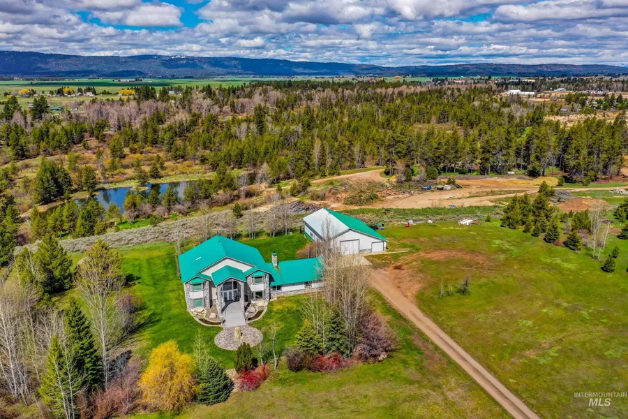 MAGNIFICENT MOUNTAIN ESTATE! This 4997 square foot home features grandeur throughout, over 3000 square feet of shop space with an 800 square foot guest apartment PLUS a three-car garage all on 3.23 sun-soaked acres with panoramic valley views. The stunning kitchen was just remodeled this year and new carpet was just installed throughout the home. The main level features two living rooms, two dining areas, an office, a den, a bedroom, full bathroom and laundry. Up the sweeping split staircase are two more bedrooms, a bathroom and an incredibly spacious primary suite with private balcony, walk in shower, generous closet and soaker tub. Outdoors you will enjoy a Trex deck, pergola, hot tub, greenhouse, garden space and beautiful lawn. The shop has storage galore, a wood stove, halogen lighting and a guest apartment. Just a couple minutes to Jug Mountain Ranch and 10 minutes to downtown McCall and Payette Lake.