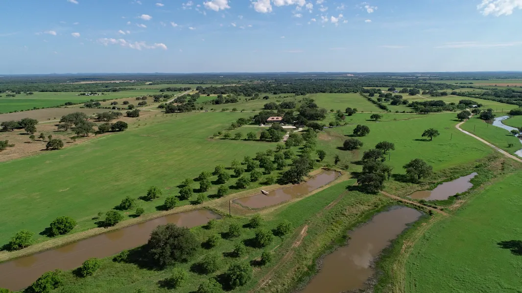 The ranch contains 138 acres of fertile lush pastures with the majority planted in coastal, an irrigated Pecan Orchard, and large Live Oaks throughout. Quihi Creek transverses the east side creating four beautiful lakes with Elm Creek bordering the west and both joining on the southern end of the property.