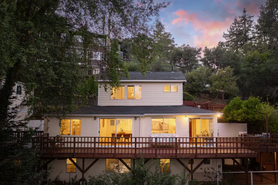 This captivating, sunlit Gerstle Park jewel is a charming, private retreat offering a tranquil view of the bridge and Bay and a delightful garden setting. It offers a peaceful escape with inviting indoor - outdoor flow featuring three bedroom - three bathroom, including two spacious ensuite bedrooms. Enjoy the cozy, sun-drenched window seat, an entertainer's deck bathed in natural light, a private primary suite, and a lower-level suite with a welcoming seating area. The garden offers vibrant fruit trees and raised beds, while the detached garage provides ample storage. There's also a convenient separate office. You'll love the sense of community and easy access to downtown shops, dining and parks. A radiant retreat blending modern comfort with timeless charm, 138 Miramar is more than a home - it's a lifestyle!