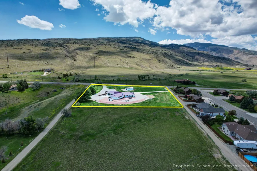 Nice views of Cedar Mountain & Heart Mountain, 2.97 ac. with irrigation water run to the lot in two U/G lines to be set up with sprinkler irrigation. 512 SF detached storage garage in addition to the 3 car heated attached garage. Concrete patio with large gazebo. Xeriscape gravel yards, with raised planters. Total Steel exterior for no maintenance.Plenty of room for livestock. Private setting only 2 miles from Walmart. Double Oven, garden shed, 2 hot water heaters, tile entry & kitchen/laundry room, covered entry. Top notch home, +/- 3 ac. lot for livestock with irrigation water available and close to town.