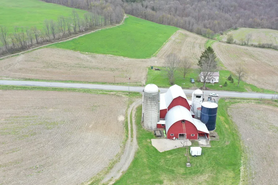 Bordering over 5500 acres of Cuyler Hill State Forest and Chippewa Falls and a section of the renowned Finger Lakes Trail, this beautiful property offers the new owner many possibilities. Start your own small farm utilizing the large two-story, well-maintained dairy barn with extensive additions, using it for storage, livestock, and/or horses for yourself, or start a boarding/horseback riding business. Or you could convert the buildings into a great hunting camp, vacation getaway, or possible yar commercial business. The property has electrical service available and a drilled well in place, so it could also be a nice location to build a year-round home with great views across the valley. There is a gorgeous 1.5-acre spring-fed deep pond that is stocked and ready to fish, along with the Mud Creek trout stream that traverses the property. There are 45+/- acres of active tillable and pasture land, offering income potential through leasing to area farmers or start a small farm operation of your own. The property is also less than a one-quarter mile east of the Mariposa State Forest along the Finger Lakes Trail, providing an additional 3002 acres for hunting, hiking, and camping and miles of snowmobiling trails available for winter fun as well. This area of Central New York is renowned for its wildlife conservation efforts and deer and wild turkey hunting, making this property an ideal location for your base for hunting or outdoor activities and enjoying nature. Between the area farms and thousands of acres of woodlands, streams, and brushy cover, this property, and the surrounding area offers the ideal diverse habitat for whitetail and area wildlife to pass through. Amazing additional outdoor activities await with Labrador Mountain for skiing and winter sports just 10 miles away and just a half-hour to Dorchester Park, located on the 1200 acre lake of the Whitney Point Reservoir, and offers a public beach, picnic area, and NYS boat launch for access to outstanding fishing for walleye, smallmouth, and largemouth bass, pike, and panfish, among many other species. While the property is remotely located on a quiet country road, amenities are only 4 miles away in DeRuyter, Cortland, and Whitney Point are a half-hour away, and you can be in Binghamton within an hour. NYC/George Washington Bridge is just 3.5 hours away. Adjacent parcels also for sale: 62+/- acre parcel with newer dairy barn, drilled well, electric, beautiful pond & ag fields/pasture, trout creek & a second parcel with 27.62+/- acres with a house and 26 acres of tillable fields. *Property part of a larger tax parcel.