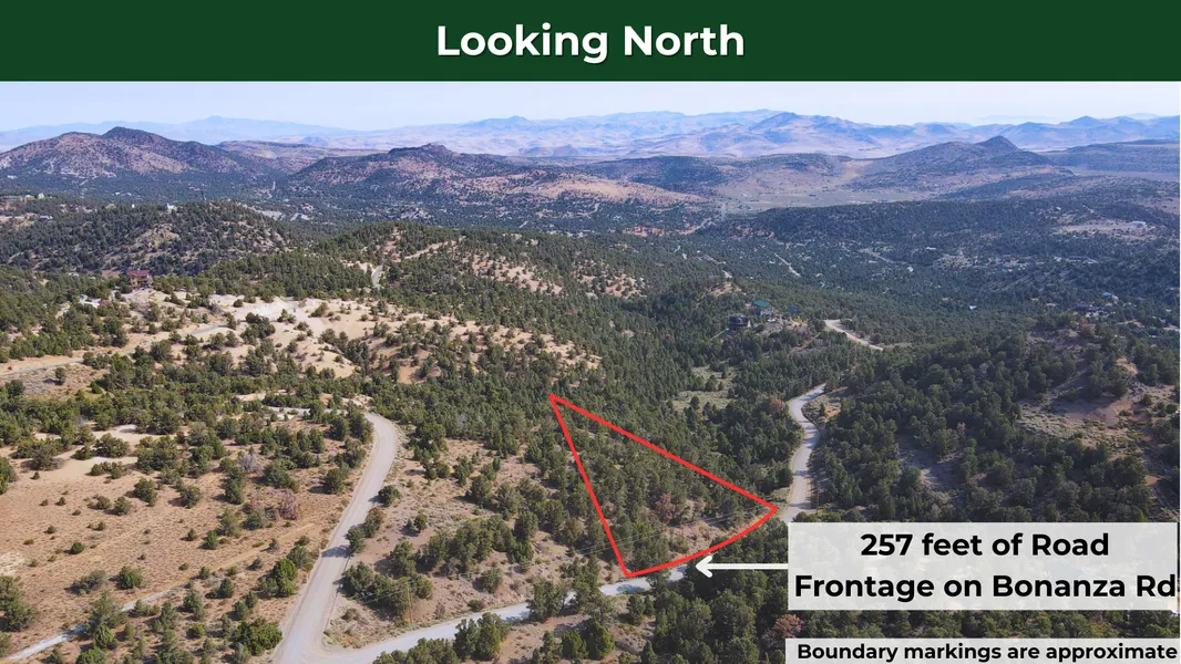 This property includes 257 feet of road frontage on Bonanza Road. There are wells in the area with varying depths.