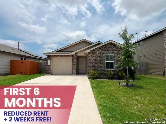 *** Move-in Special 2 Weeks Free Rent *** Reduced Rent $1295 for the 1st 6 months, then $1395 per month. 3 Bed 2 Bath 1179 sq ft Single Story Home in Whisper Falls. Living/Dining Room Combo. Kitchen with Quartz Counters, Breakfast Bar. Gas Stove, Microwave, Dishwasher. Primary Bedroom with Ceiling Fan, Walk-in Closet. Primary Bath with Shower/Tub Combo. Fenced Yard, Attached Garage. Experience the ultimate Resort-style living with amenities such as a Pool, Clubhouse, Cabanas, Playground, Basketball court, and Splash Pads. Plus, the community even has its own Lifestyle Director to help plan activities and events for residents. Easy access to Highway 90, 211, Lackland AFB, Shopping.